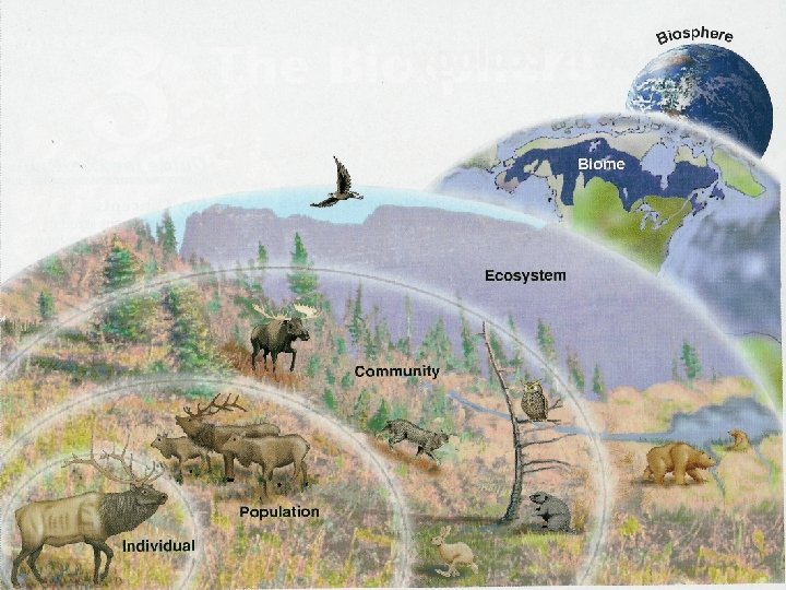 Levels of Organization • • • Organism - individual Population – members of the same species Community – 2 or more populations Ecosystem – communities & abiotic factors Biome – ecosystems with similar climates Biosphere – entire planet (largest level)