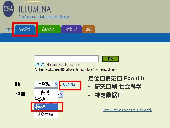 一 研究�源 美国经济学会Econ. Lit数据库资源 Recent References Related to the Social Sciences CSA社科近期引文信息