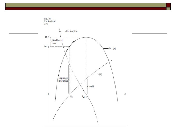 Testes de Hipóteses clássicos Razão de verossimilhança: Baseado na proposição de que restrições podem ser “ruins” Será que a redução no critério (log da verossimilhança) é alto? Multiplicador de Lagrange: Examinar as condições de primeira ordem. Se o gradiente é significativamente “não zero” para o estimador restrito. Wald: já visto.