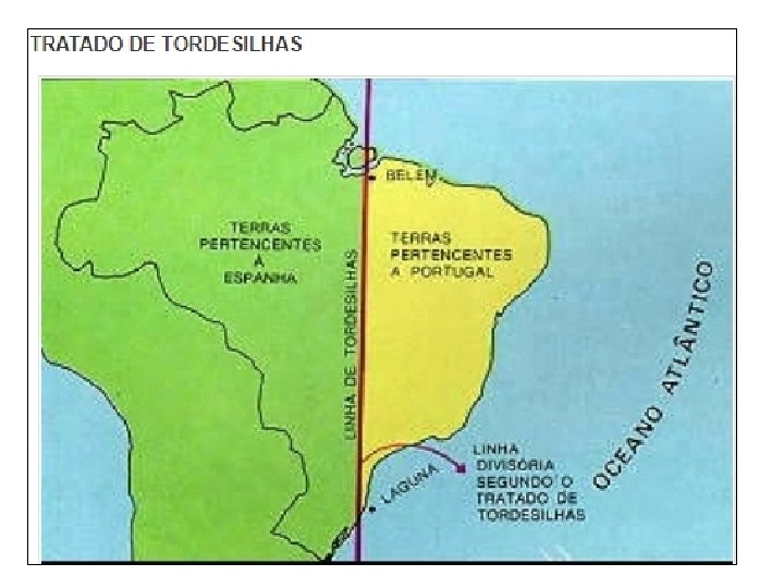 Tratado de Tordesilhas Espanha e Portugal foram pioneiros na expansão marítimo-comercial europeia, iniciada no século XV, que ficou conhecida como Grandes Navegações e que resultou na conquista de novas terras. Essas descobertas geraram diversas tensões e conflitos entre os dois países que, na tentativa de evitar uma guerra, em 7 de junho de 1494 assinaram o Tratado de Tordesilhas, na pequena cidade de Tordesilhas, na Espanha. Esse tratado estabeleceu uma linha imaginária que passava a 370 léguas a oeste do arquipélago de Cabo Verde (África), dividindo o mundo entre Portugal e Espanha: as terras situadas a leste seriam de Portugal enquanto as terras a oeste da Espanha.