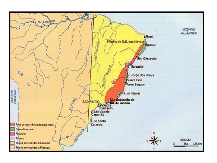 EXPANSÃO TERRITORIAL DO BRASIL COLÔNIA Durante o período do capitalismo comercial (séculos XV a XVIII), as metrópoles europeias acumularam capital com a prática de atividades de retirada e comercialização de produtos primários (agrícolas e extrativistas), empreendida nos territórios conquistados. O Brasil na condição de colônia portuguesa, consolidou-se como área exportadora de matérias-primas e importadora de bens manufaturados. Esse sistema de exploração de matérias-primas permite explicar a formação e a expansão territorial do Brasil, juntamente com os tratados assinados entre Portugal e Espanha (Tratado de Tordesilhas e Tratado de Madri), que acabaram por definir, com alguns acréscimos posteriores, a área que hoje consideramos território brasileiro. •