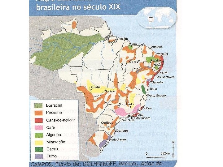 A EXPANSÃO ECONÔMICA A expansão de atividades dos colonizadores avançou gradativamente das faixas litorâneas para o interior. Nos primeiros dois séculos, formou-se um complexo geoeconômico no Nordeste do país. Para cultivar a cana-de-açúcar, os colonos passaram a importar escravos africanos. A primeira leva chegou já em 1532, num circuito perverso do comércio humano que durou até 1850. Conforme os geógrafos Hervé Théry e Neli Mello, a produção de cana gerou atividades complementares, como a plantação do tabaco, na região do Recôncavo Baiano, a criação de gado nas zonas mais interiores e as culturas alimentares no chamado Agreste (transição da Zona da Mata úmida para o semiárido).