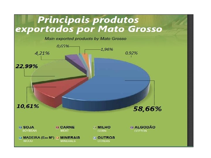 Desafios da economia mato-grossense Os desafios para produzir soja, milho, algodão, carnes e até floresta em Mato Grosso são grandes. Carga tributária muito grande. As perspectivas para aumentar a produção dessas culturas existem, são visíveis e merecem a atenção dos poderes públicos.