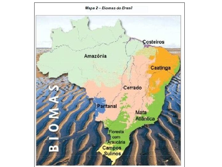 A Região é formada por três importantes ecossistemas do Brasil: o bioma amazônico que ocupa parte do Mato Grosso como extensão da floresta tropical da Amazônia (Hiléia Amazônica); o Cerrado, dominante na Região e com propagação para parte do Nordeste ocidental, e o Pantanal, que avança na direção dos países fronteiriços, Bolívia e Paraguai. O mapa 2 mostra os três biomas da região e sua dimensão nos ecossistemas brasileiros.
