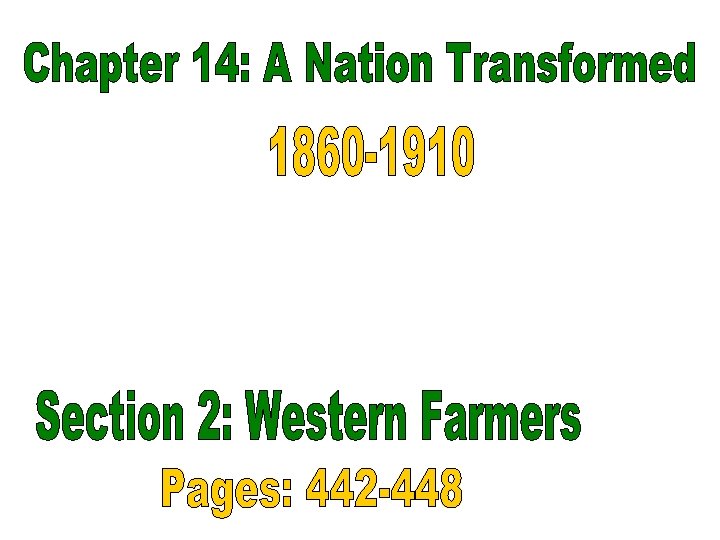 • Western Environments and Farming: (444 -445) – Although settlers homesteaded some 80 million acres of public land in the Great Plains between 1862 and 1900, the region did not immediately prosper – Supplies were expensive, and the environment posed problems for farmers