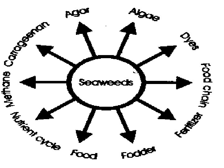 *Marine algae, as primary producers, are ecologically important, and economically have been used as food and medicines for centuries. *Today, various species of marine algae provide not only food but also produce extracts such as agar, carrageenans, and alginates. * These extracts are used in numerous food, pharmaceutical, cosmetic, and industrial applications.