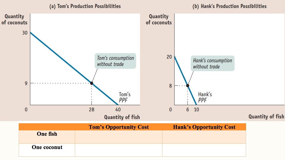 True or false? Explain. a. An increase in the amount of resources available to Tom for use in producing coconuts and fish does not change his production possibility frontier.