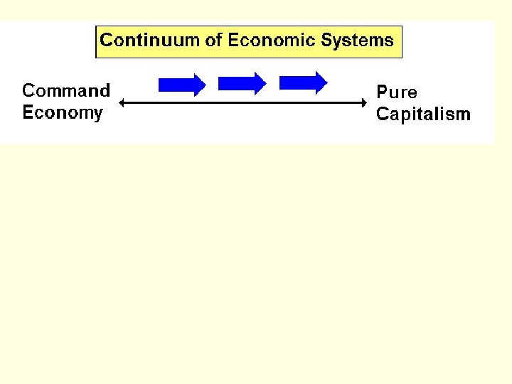 When studying different economic systems, it is best to view them on a continuum, as depicted here. Where on the continuum would you place the United States? Canada? North Korea? What do you think is the most effective economic system?