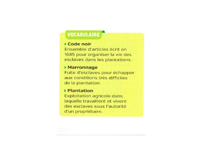 Economie de plantation : économie dont la prospérité et l’équilibre reposent sur l’existence de plantations esclavagistes où est pratiquée une culture intensive de plantes tropicales dont leur production est vendue en Europe (sucre, café, cacao, tabac…) Plantation : une exploitation agricole utilisant les esclaves d’Afrique et dont la production est en majorité destinée à l’exportation