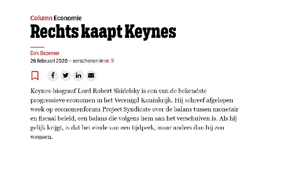 Macro, meso, micro Macro: economische systemen als geheel. • Het nationaal inkomen dat nu krimpt als gevolg van de coronacrisis. Meso: gaat over bedrijfstakken. • De bedrijven in de horeca die het lastig hebben i. v. m. het sluiten van de deuren tijdens de coronacrisis. Micro: het gedrag van afzonderlijke gezinnen en bedrijven. • Mensen die toiletrollen hamsteren tijdens de coronacrisis.