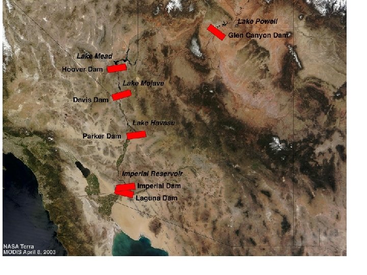 Cohen, et al (2001). A preliminary water balance for the Colorado River Delta, 1992 -1998. J. Arid Environments 49: 35 -48. Hoover Dam Glen Canyon Dam