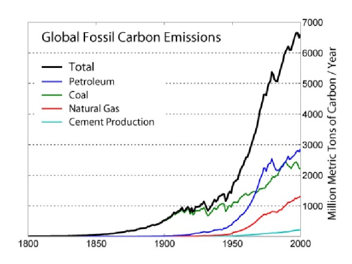 FLUXES: Photosynthesis balances respiration Volcanism balances by sedimentation and deposition Net transfer to atmosphere is by burning of fossil fuels (7 GT) and reduction of photosynthesis by forests from deforestation (1 GT) reservoirs in gigatons and exchanges in GT/year