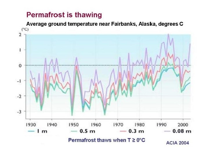 - Reductions in polar ice Reductions in glacial ice Sea level rise Melting of Permafrost 14% of the world’s organic carbon is stored in permafrost. As the poles warm (and they are warming faster than anywhere else), this carbon may be mobilized as decomposing bacteria gear up…. This is a type of threshold response (not a gradual response), and would involve positive feedback loops…