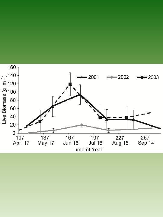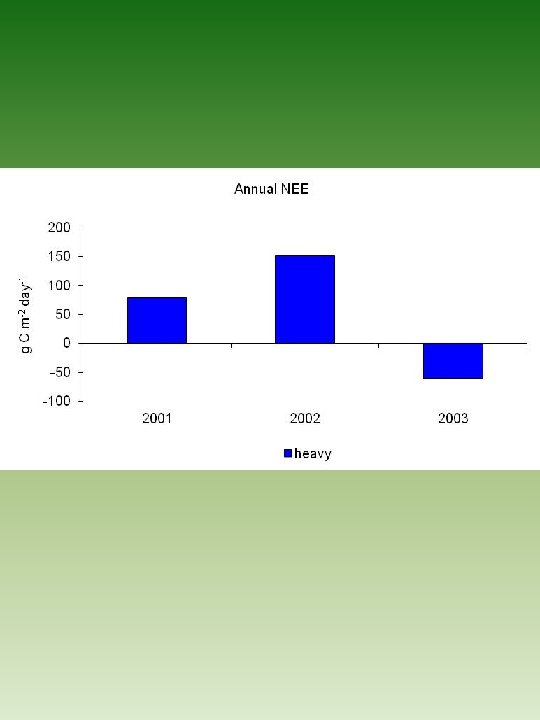 Conclusions • Surprising autocorrelation of climate pattern in the Great Plains • Negative correlation of growing season precipitation to air temperature • System carbon is positively correlated to precipitation • Soil carbon is negatively correlated to precipitation • Ecosystem NEE is most sensitive to changes in precipitation as a result of change in live biomass • Soil N 2 O and CH 4 fluxes are less responsive to climate variability compared to system carbon