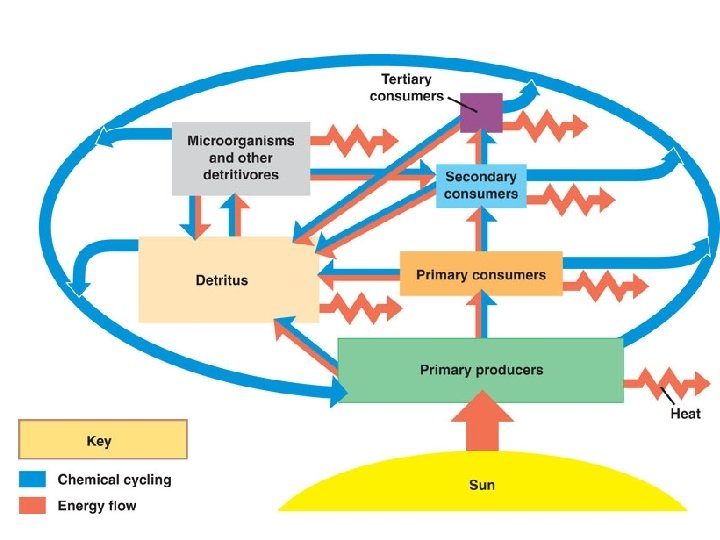 Energy Flow l l Energy flows through ecosystems, while matter cycles within them Resources critical to human survival and welfare, ranging from the food we eat to the oxygen we breathe, are products of ecosystem processes