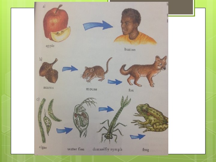 Progress Check #2 2. The list below shows typical producers and consumers you would find in a pond ecosystem. Reorganize the below list into producers and consumers. algae leopard frog water flea mosquito bladderwort water horsetail pickerel bullrush water lily Canadian toad red fox whitetail deer reed sweet grass wolf dragon fly duckweed roundworm great blue herron spider Construct at least five food chains using the living things in the above list.