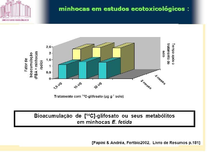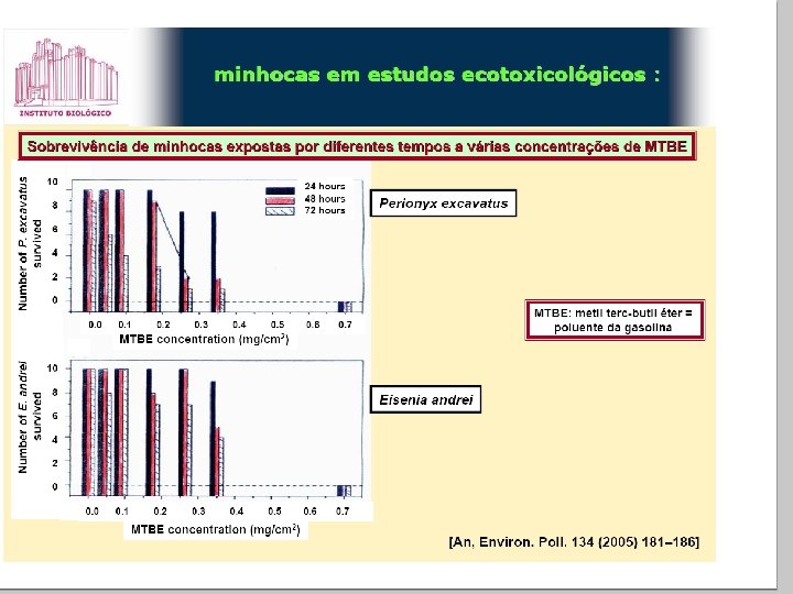 Biotoxicidade • Uso de seres vivos para determinação de toxicidade, por meio de exposição a uma concentração do poluente, por tempo determinado Uma avaliação completa exige que os testes sejam realizados com produtores primários, consumidores primários e secundários.