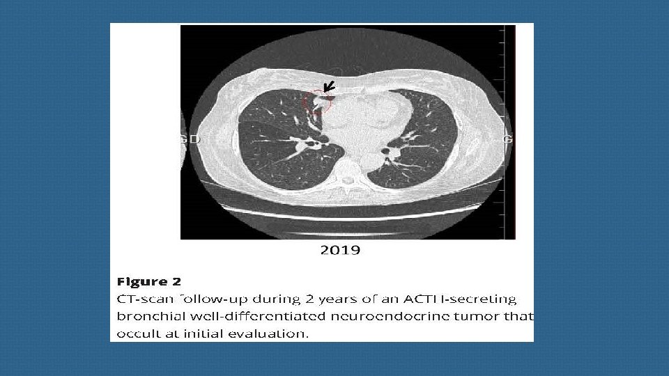 these richly vascularized tumors are notoriously difficult to detect due to their small size and their location being close to pulmonary vessels. a metanalysis published in 2015 suggests that, overall, approximatively 53% of EAT NET will be clearly revealed by CT, making this imaging method a valuable tool for diagnosis and patient management. When imaging shows no culprit NET, special attention should then be paid to sites such as the bronchi , small intestine and other much rarer sites involved in ectopic ACTH secretion.