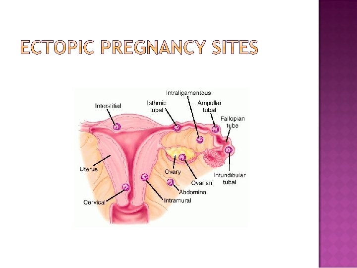 DEFINITION It is a condition where by a fertilised ovum is implanted on any tissue other than lining of the uterine cavity e. g. fallopian tube Also known as extra uterine pregnancy