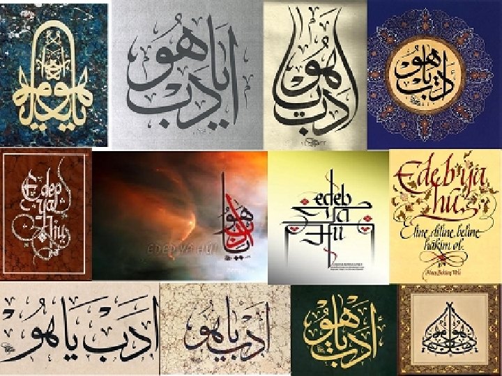 Osmanlı Medrese Geleneğinde Bir Uygulama Medreseye ilk defa başlayan çocuğun dersinin başına hocası üç harflik sihirli kelimeyi yazar ( ) ﺍ ﺩ ﺏ ve eğitim böylece başlar. “Edep kelimesi, ( ) ﺍ ﺩ ﺏ elif, dal ve be harfinden ibarettir. Elif, kişinin eline, de harfi kişinin diline, b harfi de beline sahip olmasına işaret eder. ” “Girdim ilim meclisine, eyledim kıldım talep, Dediler ilim geride, illa edep. ” Yunus Emre