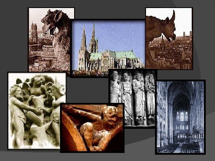 Gothic Architecture Gothic cathedrals are covered with a profusion of wild carvings depicting humanity in conflict with supernatural forces—demons, angels, gargoyles, and monsters. The word "Gothic" derives from "Goth, " the name of one of the barbaric Germanic tribes that invaded the Roman Empire