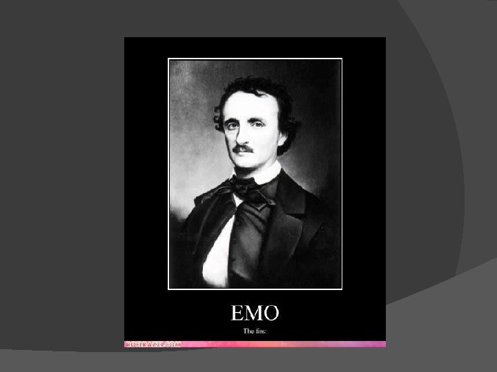 Edgar Allan Poe His stories have: Settings that featuring ○ Dark, medieval castles ○ Decaying ancient estates Characters that are ○ Male—insane ○ Female—beautiful and dead (or dying) Plots that include ○ Murder ○ Live burials ○ Physical and mental torture ○ Retribution from beyond the grave For Poe, it was only in these extreme situations that people revealed their true nature.