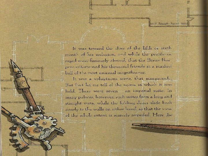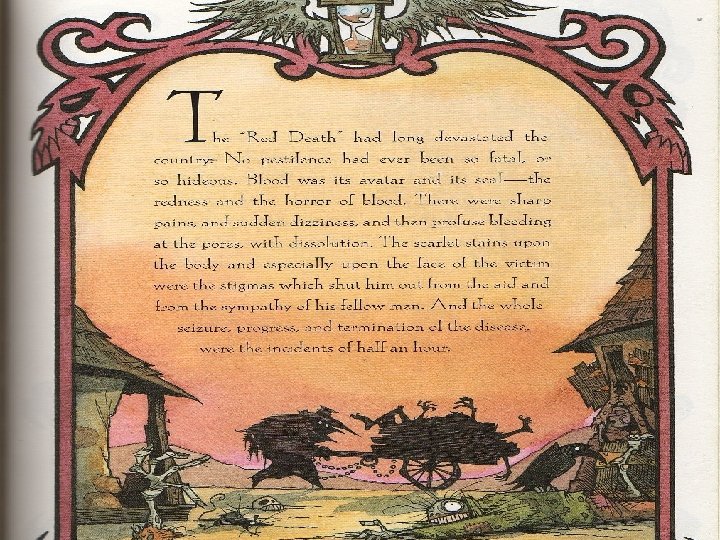 What might each item symbolize? ⦿ Prospero⦿ Uninvited ⦿ The Wealth; mankind’s attempt to live forever Guest- Death; Disease/Plague "Castellated a place of confinement; safety Abbey"