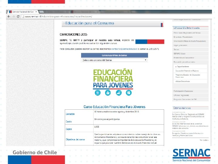 Cursos de Educación Financiera para Jóvenes. Las inscripciones del curso están disponibles hasta el 18 de diciembre en el sitio web www. sernac. cl o www. sernac. cl/jovenes.