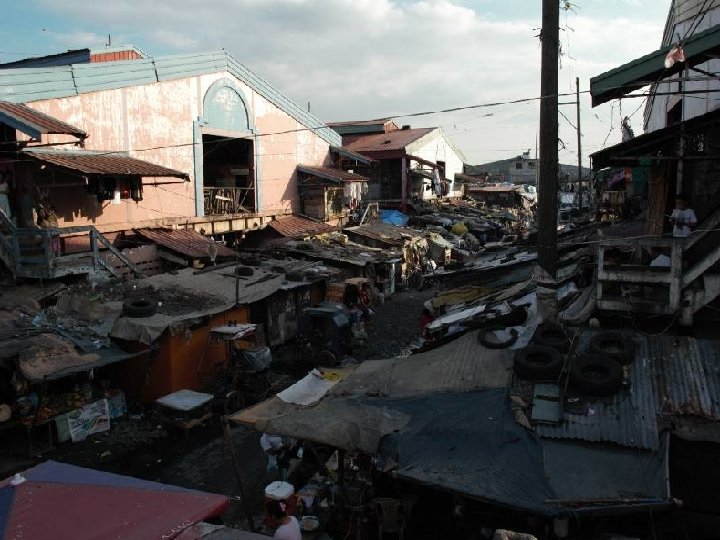 The origins of inhabitants � The community is mainly composed of people who come from calamity stricken parts or zones of conflict in the Philippines. � Many lost their homes and meager livelihood as tenants, small farmers or fishermen, through typhoons, earthquakes or other natural disasters. � Others left their provinces because they became involved in or were victims of armed conflict between military groups and the Communist New People's Army (NPA). They migrated to the city in search of a better future for themselves and their families - often settling with relatives already squatting there.