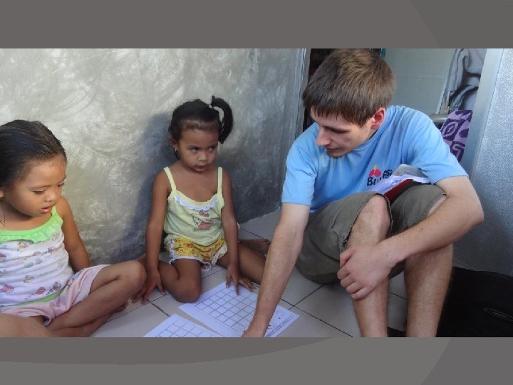 Our International Volunteers Robin BUSCH Christian LECHELER Johannes PRESTER � Visit Pre-School age children under 6 of the area at their homes giving them Basic Education in English and Tagalog.