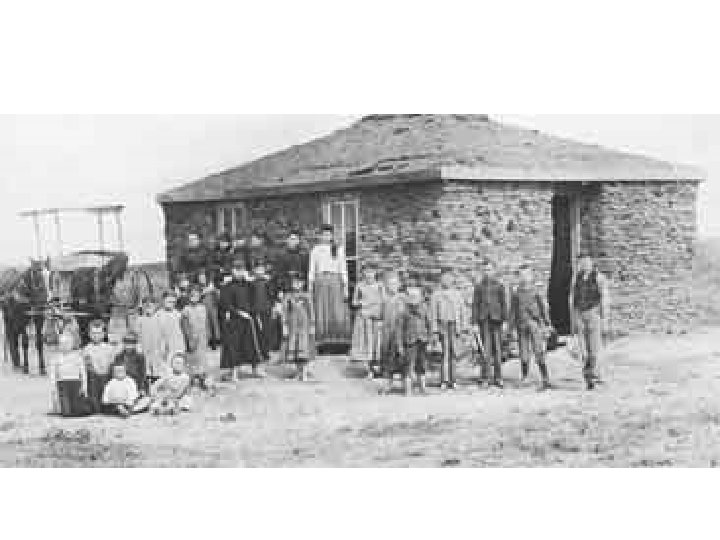 This is a typical “one-room schoolhouse”. These early schools had a single teacher responsible for teaching all students (usually from kindergarten through 8 th grade). No bathrooms, no air conditioning, no furnace (wood stove, if lucky…) – just a basic, small building.