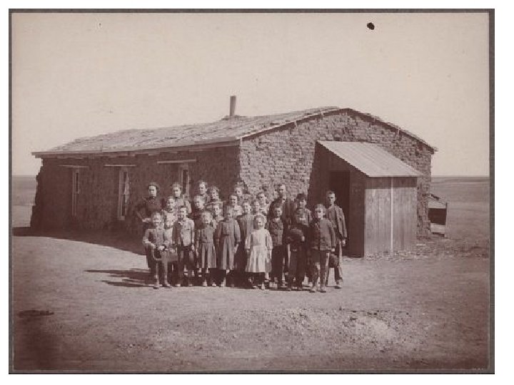 School buildings were made out of whatever materials were available, depending on what part of the country you lived in. This one, in the Great Plains, was made out of mud bricks.