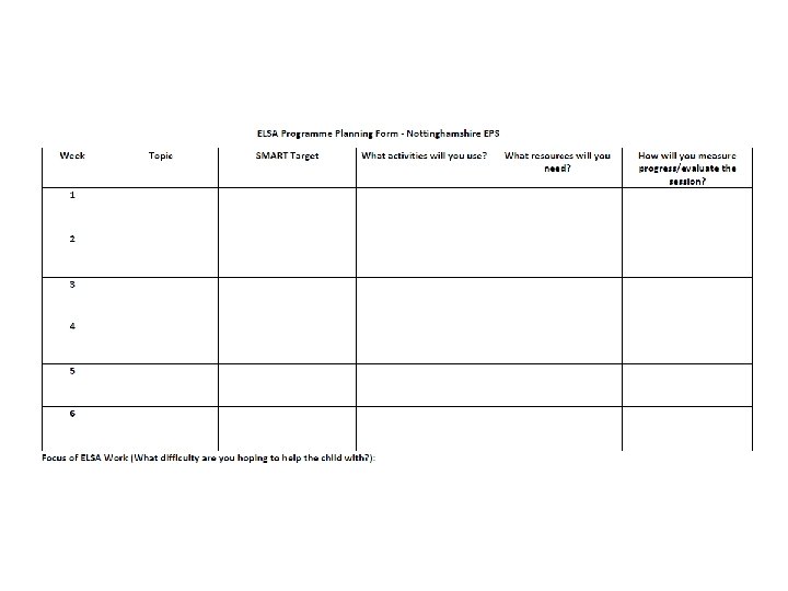 ELSA Supervision • Group supervision every half-term facilitated by an educational psychologist • ‘Clinical’ supervision (not managerial) • Problem-solving approaches modelled e. g. Solution Circles • Peer group support e. g. sharing ideas/resources