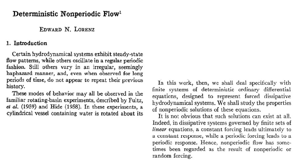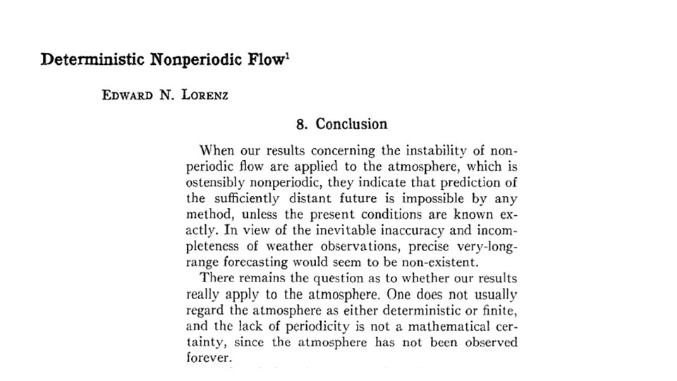 Edward N Lorenz- the pioneer of Chaos theory 1917 -2008 Edward N Lorenz, The essence of Chaos (U. or Washington press. 1993, 227 pp) “I have always told my students, when they are writing up some of their work, to allow much more time than they think they can possibly need- at least a month in the case of a thesis. In trying to write a clear explanation of some point that you think you understand, you may discover that you do not understand it well enough to explain it, and you may need to spend quite a while to think it through… This advice applies to teachers as well as to students. In my case, in trying to understand then explain to the reader how the two surfaces could merge…. I realized that the surfaces – not just the curves – must fail to merge; …My final conclusion, now thoroughly substantiated, was that the surfaces were really infinite in number; as we say now, the attractor was strange. I never guessed at the time that this attractor would for a while, much later, become the feature of the paper that would draw the most attention. ”