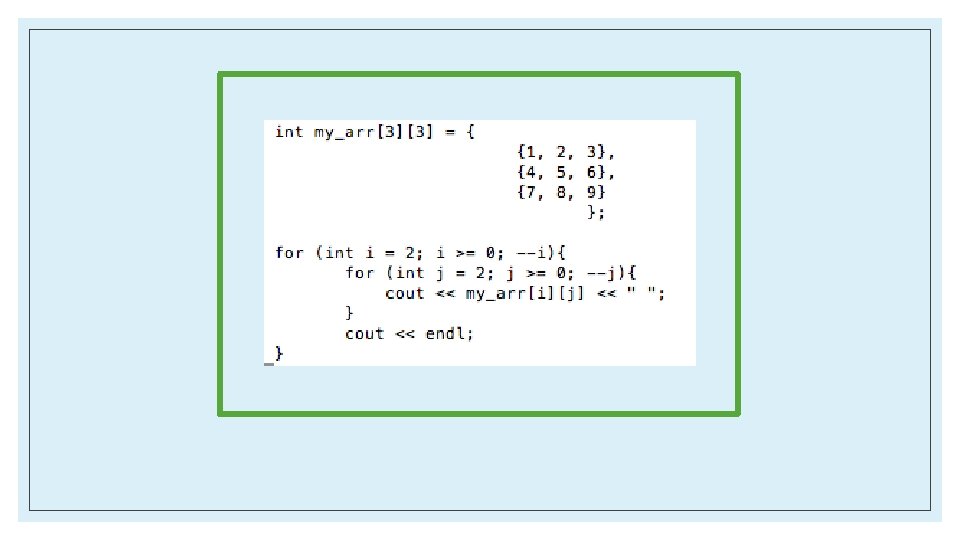 ![Initializing Directly const int HEIGHT = 3; const int WIDTH = 4; int board[HEIGHT][WIDTH] Initializing Directly const int HEIGHT = 3; const int WIDTH = 4; int board[HEIGHT][WIDTH]](https://slidetodoc.com/presentation_image_h2/4e794aa985297cab113b9aa27641dcf5/image-10.jpg)