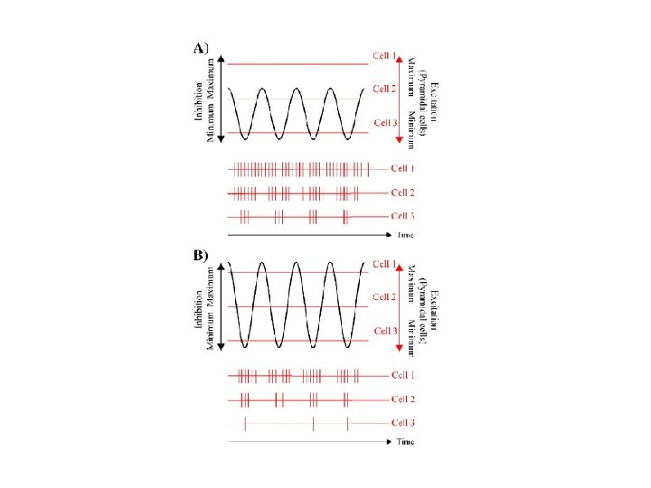 Inhibition-timing hypothesis • Oscillatory activity reflects the changes between phases of maximal and minimal inhibition • Oscillations provide a small time window for firing of many neurons Tonic firing Rhythmic firing Inhibition