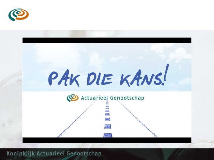 Hoe word je actuaris? • Atheneum of Gymnasium, wiskunde A en B • Actuarieel Rekenaar, Actuarieel Analist (AI) • Een universitaire studie zoals actuariële wetenschappen, econometrie, wiskunde of natuurkunde • Executive Master • Tias Nimbas / Actuarieel Instituut EMAS = Executive Master in Actuarial Science; • Uv. A AEMAS = Amsterdam Executive Master in Actuarial Science • AAG