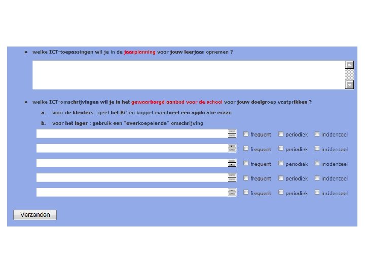 vaststellingen… bron: kennisnet (Vier in Balans Monitor) en wat bevestigd wordt door Buettner en Harrari en Baron • 70% van de leraren de behoefte heeft aan bruikbaar lesmateriaal en content voor computergebruik… zelfstandig leren, differentiëren en remediëren • het is uit onderzoek gebleken dat voorbeeldmateriaal als losstaand aanbod heel moeizaam een continue verandering in gang zet ontdekkend leren • als radertje in een groter geheel kan voorbeeldmateriaal (…) ertoe leiden dat leerkrachten zelf verder voortborduren op de ingeslagen weg inoefenen diagnosticeren en evalueren