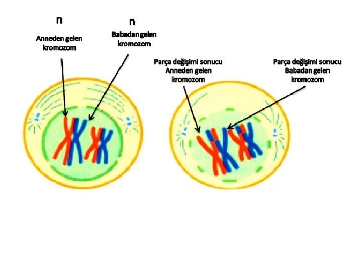 Ø Gen alış verişinden sonra çekirdek zarı erir ve kromozomlar sitoplazmaya dağılır.