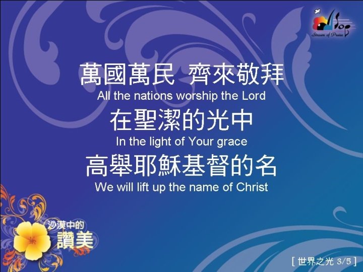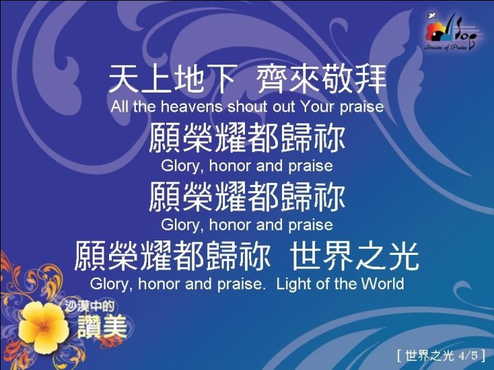 4. 主藉真理,恩治萬方 He rules the world with truth and grace, 要使萬邦證明 And makes the nations prove 彰顯上主,公義榮光 The glories of His righteousness,