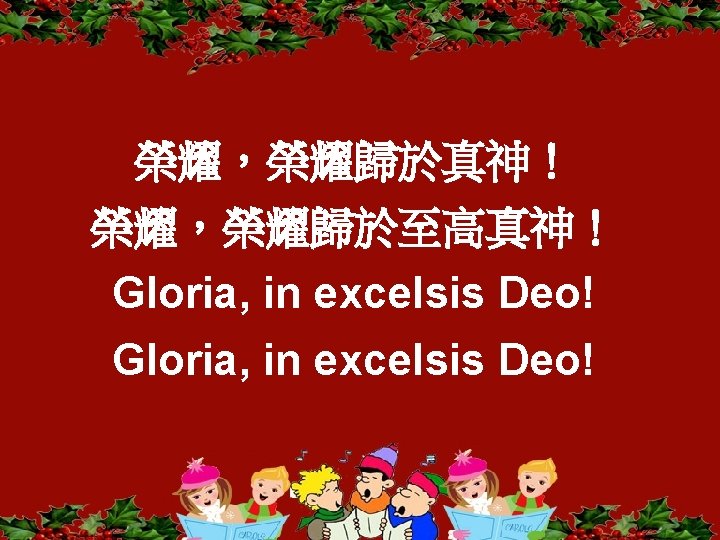 O come, let us adore Him, 齊來虔誠同崇拜, O come, let us adore Him, Christ the Lord. 齊來虔誠同崇拜耶穌基督。
