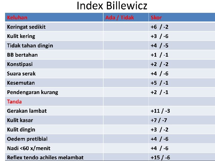 Efek samping OAT penyebab Strategi tata laksana Hipotiroid Pto/Eto 1. Penatalaksanaan dilakukan di fasyankes rujukan 2. Diagnosis hipotiroid ditegakkan berdasar peningkatan kadar TSH (kadar normal < 10 m. U/l). 3. Ahli endokrin atau ahli penyakit dalam memberikan rekomendasi kepada TAK untuk pengobatan dengan levotiroksin/natiroksin serta evaluasinya. Gangguan tidur Mfx 1. Berikan OAT golongan kuinolon pada pagi hari atau jauh dari waktu tidur pasien 2. Bila perlu konsultasikan pasien ke ahli jiwa untuk tata laksana