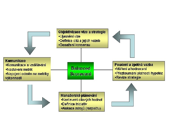 Performance Measurement • Monitorování a vykazování výkonnosti a efektivnosti (na základě klíčových indikátorů výkonnosti –KPI) • Sjednocení společného úsilí pro zlepšení výkonnosti a efektivnosti • Řízení lidských zdrojů