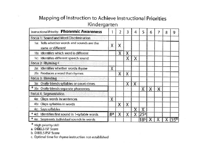 When Should the Alphabetic Principle be Taught? • Preschool – Familiarity with alphabet • Kindergarten – Familiarity with alphabet – Letter sounds, beginning blending • First grade – Letter sounds, blends and decodes simple words fluently, reads grade level material accurately