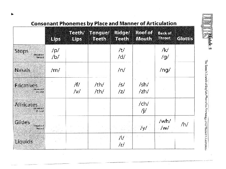 Structure of English • Phoneme: a speech sound that combines with others in a language system to make words; English has 40 -44 phonemes. • Consonant Phonemes: there about 25 consonant phonemes. • Vowel Phonemes: there about 18 vowel phonemes.