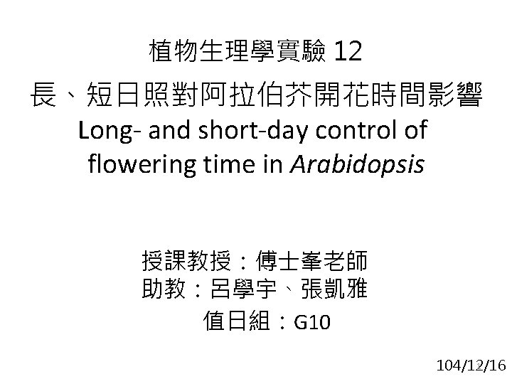 Effects of environmental cues on flowering time control Flowering time control by different photoperiods Garner and Allard, 1920 Long-Day Short-Day Adapted from Alex Webb lab, Department of Plant Sciences, University of Cambridge Adapted from : http: //tianwei. pixnet. net/blog/post/10853484 5