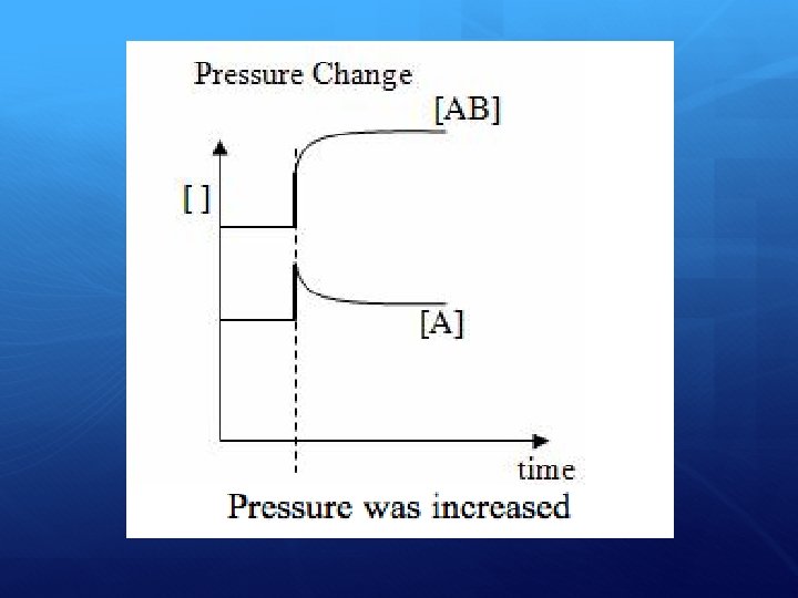 Effects of pressure change on volume and concentration Increasing pressure Explanation • A change in pressure will cause a change in concentration for any gaseous substance (ONLY gases) • If the volume occupied by a gas decreases by half, its concentration will double • Why? The [articles are compressed and now closer together, so there are the same number of particles but in a smaller volume.