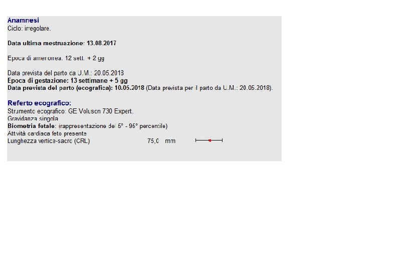 Discrepanza: epoca di amenorrea certa ma discrepanza epoca eco di > 7 giorni; discutere con la paziente