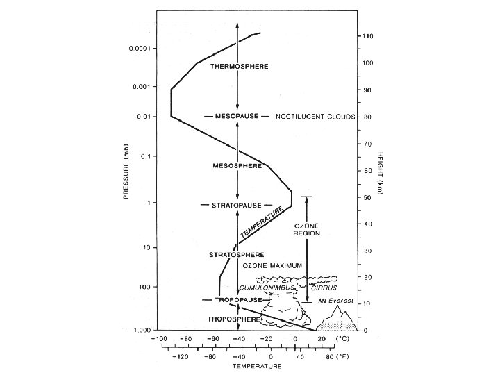 Vertical structure of the atmosphere • In meteorology we discuss air pressure in units of hectopascals (h. Pa) (previously called millibars mb) • The average atmospheric pressure at the Earth surface is 1013. 25 h. Pa • We can sense sudden changes in pressure when our ears ‘pop’ such as that experienced in old aircraft