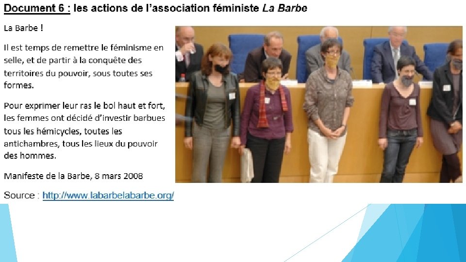 Fin du lancement 3. Mettre en évidence l’ambiguïté de la notion d’égalité dans la déclaration des droits de l’homme et du citoyen Article 1 de la déclaration des droits de la femme et de la citoyenne (1791) La femme naît libre et demeure égale à l’homme en droits. Les distinctions sociales ne peuvent être fondées que sur l’utilité commune. Olympe de Gouges, 1791 Source : http: //www. ldh-france. org/ Ø Pourquoi Olympe de Gouges a-t-elle rédigé ce texte ? 4. Lancer la réflexion des élèves : Ø Les femmes sont-elles égales aux hommes aujourd’hui ?